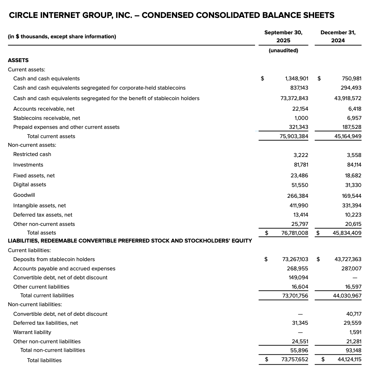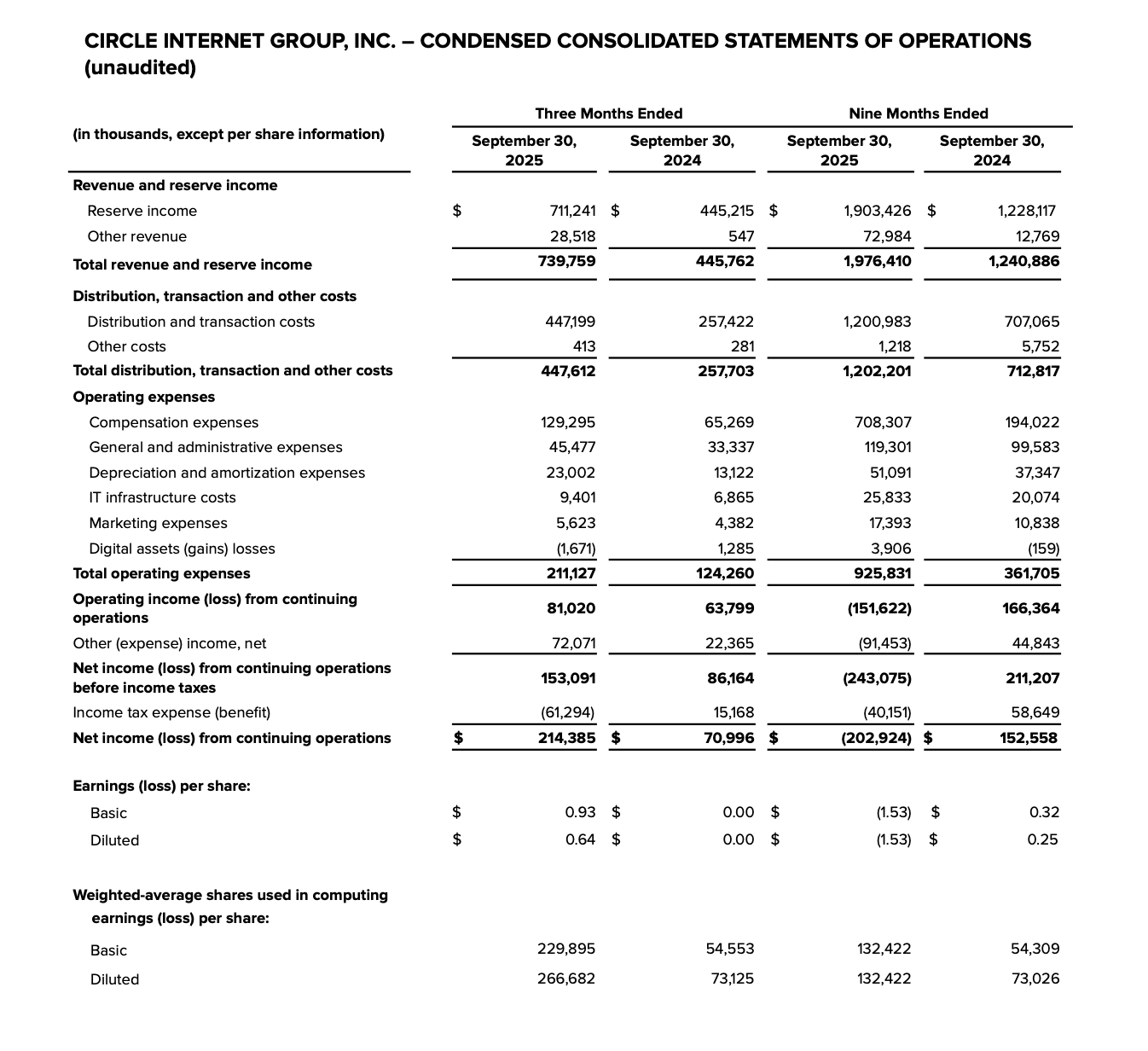 NEW YORK — NOVEMBER 12, 2025 — Circle Internet Group, Inc. (NYSE: CRCL) today announced results for the third quarter of fiscal year 2025.